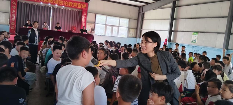 课堂上,孙真真律师首先从肢体冲突、言语伤害到网络暴力,系统讲解了校园欺凌的多种形式,并结合真实案例,帮助学生识别欺凌行为、明晰法律边界。然后,孙真真律师通过一系列的讲解与互动,引导学生思考“如何面对欺凌”“怎样依法维权”,学会预防霸凌、直面霸凌、抵制霸凌。最后,孙真真律师特别强调,法律不仅是约束行为的准则,更是保护每一位同学免受伤害的坚实后盾,倡导孩子们坚决抵制校园霸凌,不做沉默的受害者,也不做冷漠的旁观者。
